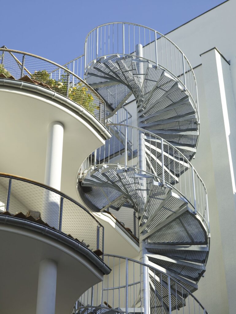 Biztonság! Amennyiben szénacél alapanyagot választunk, abban az esetben járófelületek, közlekedési utak olyan elemekkel tervezhetőek, mint például csúszásmentes lépcsőfokok, korlátok és mellvédek. Ezen kiegészítők biztonságos használatot tesznek lehetővé az adott épület különböző szintjein és a födémek között. Garantáltak a teherbírásra és a szerkezeti stabilitásra vonatkozó építési előírások is a felhasználóbarát kialakítás mellett.